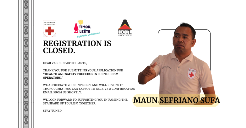 Thank you for submitting your application for “Health and Safety Procedures for Tourism Operators.” We appreciate your interest and will review it thoroughly. You can expect to receive a confirmation email from us shortly.